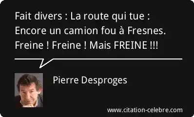 Fait divers : La route qui tue : Encore un camion fou à Fresnes. Freine ! Freine ! Mais FREINE !!!