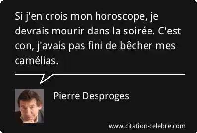 Si j'en crois mon horoscope, je devrais mourir dans la soirée. C'est con, j'avais pas fini de bêcher mes camélias.