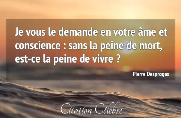 Je vous le demande en votre âme et conscience : sans la peine de mort, est-ce la peine de vivre ?