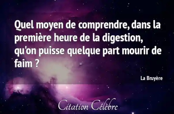 Quel moyen de comprendre, dans la première heure de la digestion, qu'on puisse quelque part mourir de faim ?