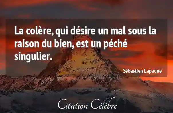 La colère, qui désire un mal sous la raison du bien, est un péché singulier.