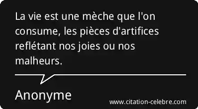 La vie est une mèche que l'on consume, les pièces d'artifices reflétant nos joies ou nos malheurs.