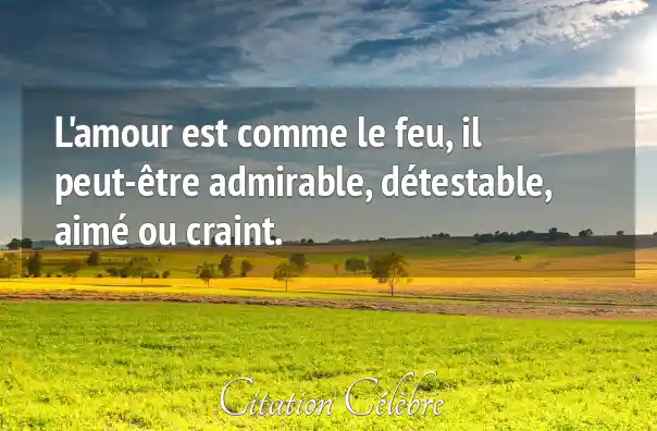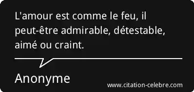 L'amour est comme le feu, il peut-être admirable, détestable, aimé ou craint.
