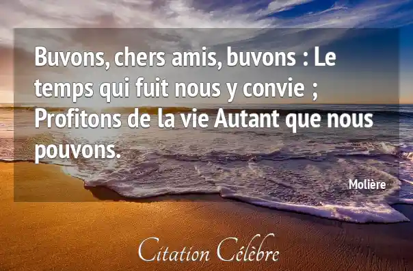 Buvons, chers amis, buvons : Le temps qui fuit nous y convie ; Profitons de la vie Autant que nous pouvons.