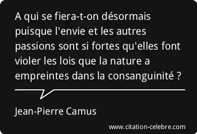 A qui se fiera-t-on désormais puisque l'envie et les autres passions sont si fortes qu'elles font violer les lois que la nature a empreintes dans la consanguinité ?