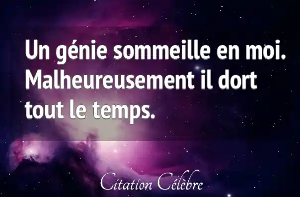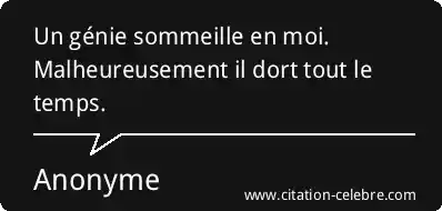 Un génie sommeille en moi. Malheureusement il dort tout le temps.
