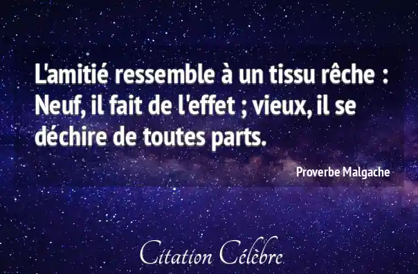 L'amitié ressemble à un tissu rêche : Neuf, il fait de l'effet ; vieux, il se déchire de toutes parts.