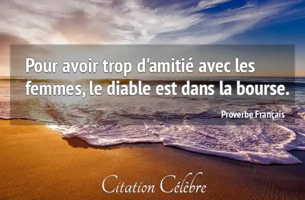 Pour avoir trop d'amitié avec les femmes, le diable est dans la bourse.