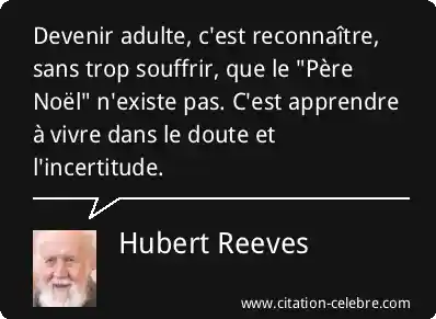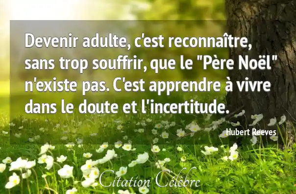 Devenir adulte, c'est reconnaître, sans trop souffrir, que le "Père Noël" n'existe pas. C'est apprendre à vivre dans le doute et l'incertitude.