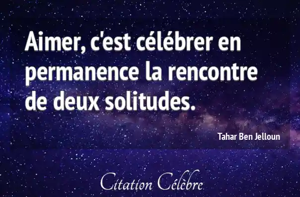 Aimer, c'est célébrer en permanence la rencontre de deux solitudes.