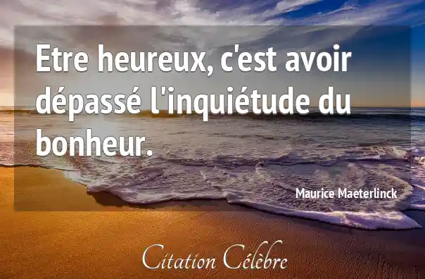 Etre heureux, c'est avoir dépassé l'inquiétude du bonheur.