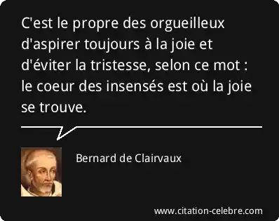C'est le propre des orgueilleux d'aspirer toujours à la joie et d'éviter la tristesse, selon ce mot : le coeur des insensés est où la joie se trouve.
