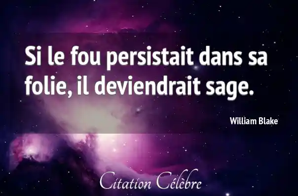 Si le fou persistait dans sa folie, il deviendrait sage.