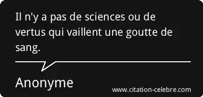 Il n'y a pas de sciences ou de vertus qui vaillent une goutte de sang.