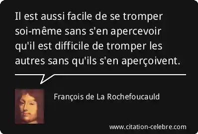 Il est aussi facile de se tromper soi-même sans s'en apercevoir qu'il est difficile de tromper les autres sans qu'ils s'en aperçoivent.