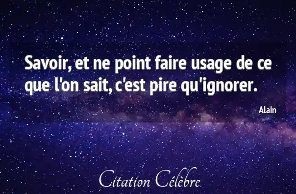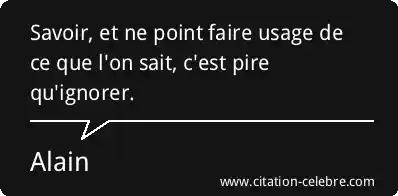 Savoir, et ne point faire usage de ce que l'on sait, c'est pire qu'ignorer.