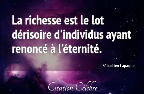 La richesse est le lot dérisoire d'individus ayant renoncé à l'éternité.
