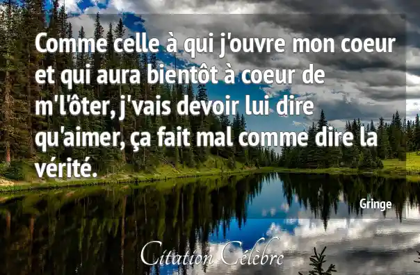 Comme celle à qui j'ouvre mon coeur et qui aura bientôt à coeur de m'l'ôter, j'vais devoir lui dire qu'aimer, ça fait mal comme dire la vérité.