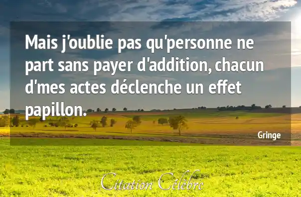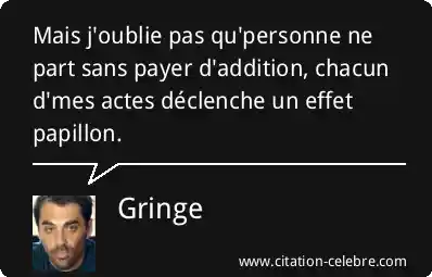 Mais j'oublie pas qu'personne ne part sans payer d'addition, chacun d'mes actes déclenche un effet papillon.
