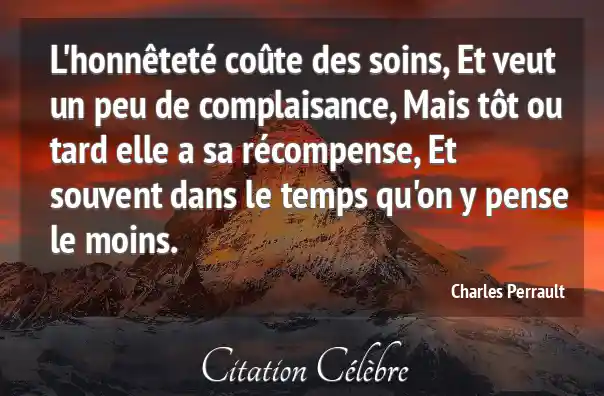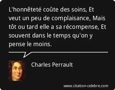 L'honnêteté coûte des soins, Et veut un peu de complaisance, Mais tôt ou tard elle a sa récompense, Et souvent dans le temps qu'on y pense le moins.