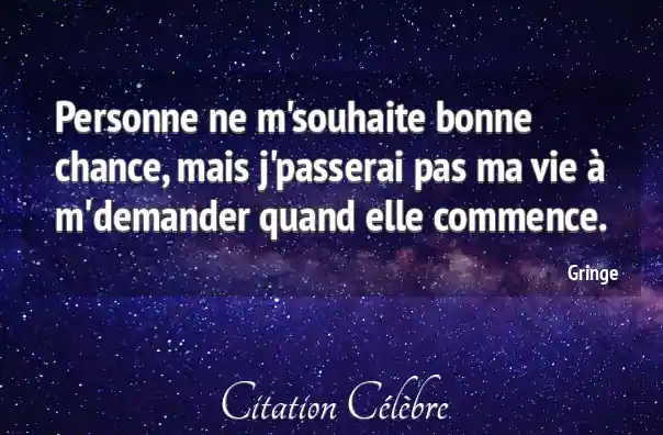 Personne ne m'souhaite bonne chance, mais j'passerai pas ma vie à m'demander quand elle commence.