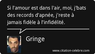 Si l'amour est dans l'air, moi, j'bats des records d'apnée, j'reste à jamais fidèle à l'infidélité.