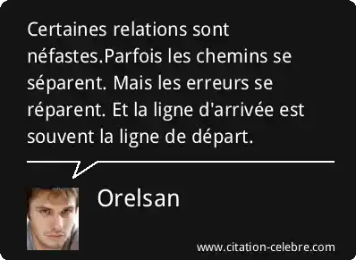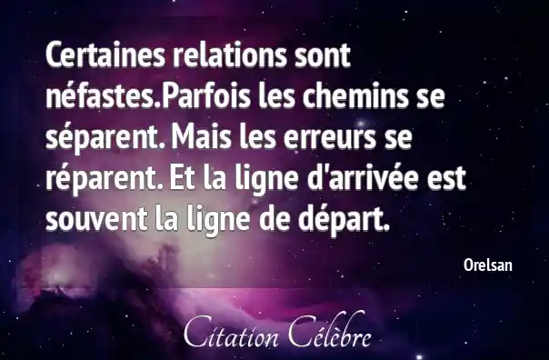 Certaines relations sont néfastes.Parfois les chemins se séparent. Mais les erreurs se réparent. Et la ligne d'arrivée est souvent la ligne de départ.