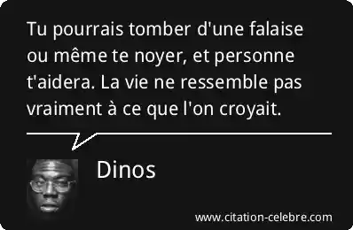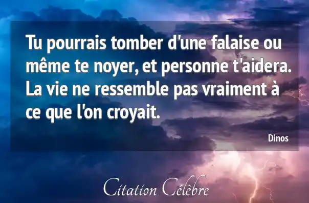 Tu pourrais tomber d'une falaise ou même te noyer, et personne t'aidera. La vie ne ressemble pas vraiment à ce que l'on croyait.