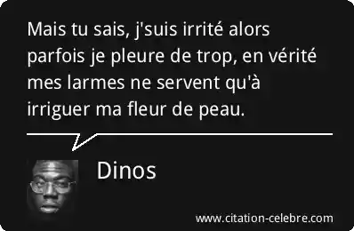 Mais tu sais, j'suis irrité alors parfois je pleure de trop, en vérité mes larmes ne servent qu'à irriguer ma fleur de peau.
