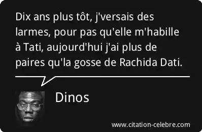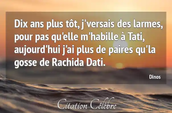 Dix ans plus tôt, j'versais des larmes, pour pas qu'elle m'habille à Tati, aujourd'hui j'ai plus de paires qu'la gosse de Rachida Dati.