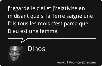 J'regarde le ciel et j'relativise en m'disant que si la Terre saigne une fois tous les mois c'est parce que Dieu est une femme.