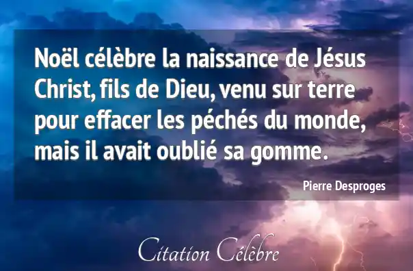 Noël célèbre la naissance de Jésus Christ, fils de Dieu, venu sur terre pour effacer les péchés du monde, mais il avait oublié sa gomme.