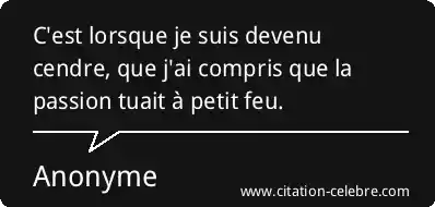C'est lorsque je suis devenu cendre, que j'ai compris que la passion tuait à petit feu.