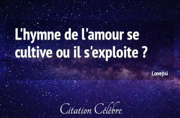 Citation Lonepsi amour : L'hymne de l'amour se cultive ou il s'exploite ?...