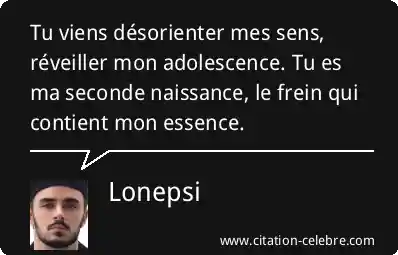 Tu viens désorienter mes sens, réveiller mon adolescence. Tu es ma seconde naissance, le frein qui contient mon essence.