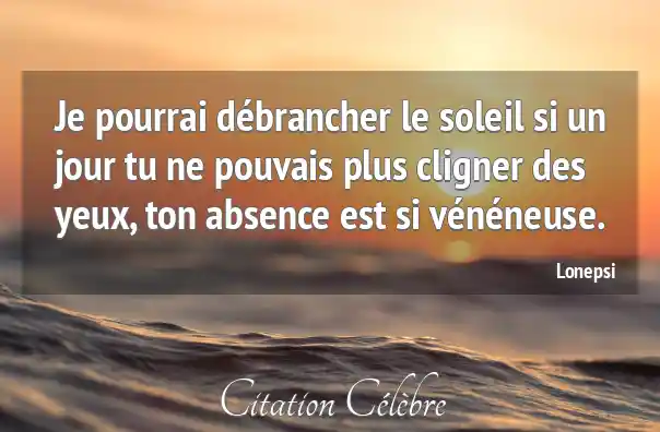 Je pourrai débrancher le soleil si un jour tu ne pouvais plus cligner des yeux, ton absence est si vénéneuse.
