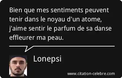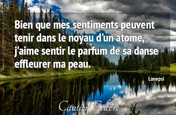 Bien que mes sentiments peuvent tenir dans le noyau d'un atome, j'aime sentir le parfum de sa danse effleurer ma peau.