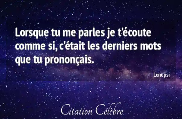 Lorsque tu me parles je t'écoute comme si, c'était les derniers mots que tu prononçais.