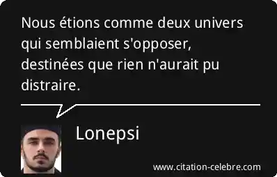 Nous étions comme deux univers qui semblaient s'opposer, destinées que rien n'aurait pu distraire.