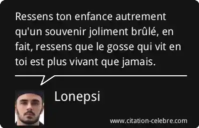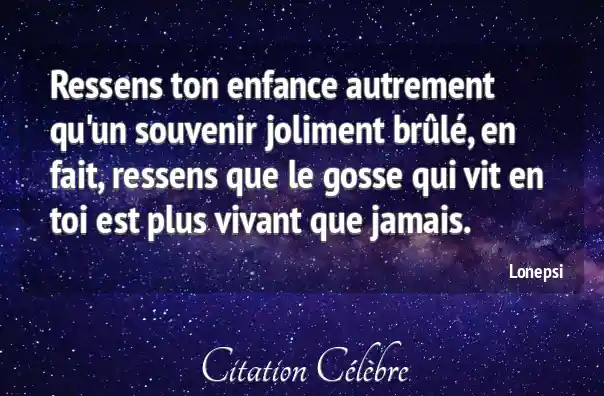 Ressens ton enfance autrement qu'un souvenir joliment brûlé, en fait, ressens que le gosse qui vit en toi est plus vivant que jamais.