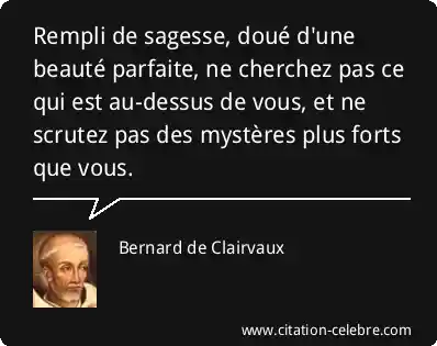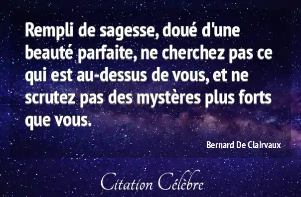 Rempli de sagesse, doué d'une beauté parfaite, ne cherchez pas ce qui est au-dessus de vous, et ne scrutez pas des mystères plus forts que vous.
