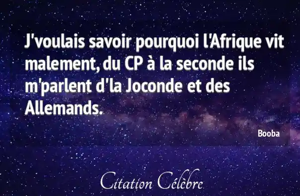 J'voulais savoir pourquoi l'Afrique vit malement, du CP à la seconde ils m'parlent d'la Joconde et des Allemands.