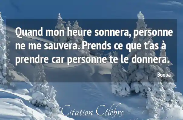Quand mon heure sonnera, personne ne me sauvera. Prends ce que t'as à prendre car personne te le donnera.
