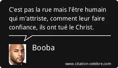 Cette puissante citation de Booba exprime une profonde désillusion et une méfiance envers la nature humaine, la considérant comme la véritable source de tristesse, plutôt que l'environnement extérieur ("la rue"). L'acte d'avoir "tué le Christ" est utilisé comme une métaphore historique et symbolique pour illustrer la capacité de l'Homme à commettre l'irréparable, la trahison ultime ou la plus grande des injustices, justifiant ainsi la difficulté de lui accorder sa confiance.
