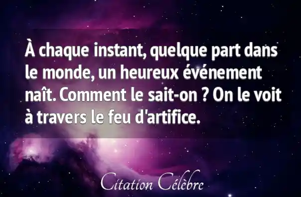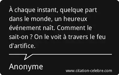 À chaque instant, quelque part dans le monde, un heureux événement naît. Comment le sait-on ? On le voit à travers le feu d'artifice.