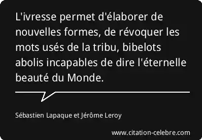 L'ivresse permet d'élaborer de nouvelles formes, de révoquer les mots usés de la tribu, bibelots abolis incapables de dire l'éternelle beauté du Monde.