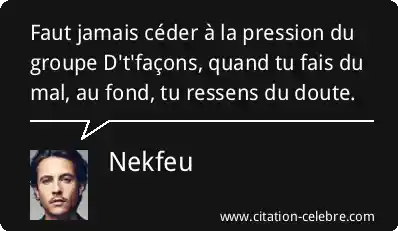 Faut jamais céder à la pression du groupe D't'façons, quand tu fais du mal, au fond, tu ressens du doute.