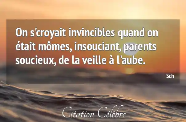 On s'croyait invincibles quand on était mômes, insouciant, parents soucieux, de la veille à l'aube.