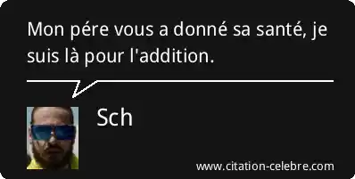 Mon pére vous a donné sa santé, je suis là pour l'addition.