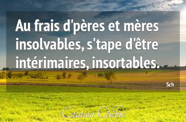 Au frais d'pères et mères insolvables, s'tape d'être intérimaires, insortables.